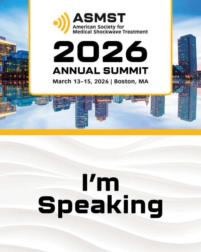 Most importantly, share what you’re looking forward to — clinical insights, hands-on learning, research discussions, or connecting with peers advancing shockwave practice. Every post helps build awareness and energy for ASMST 2026 Annual Summit.